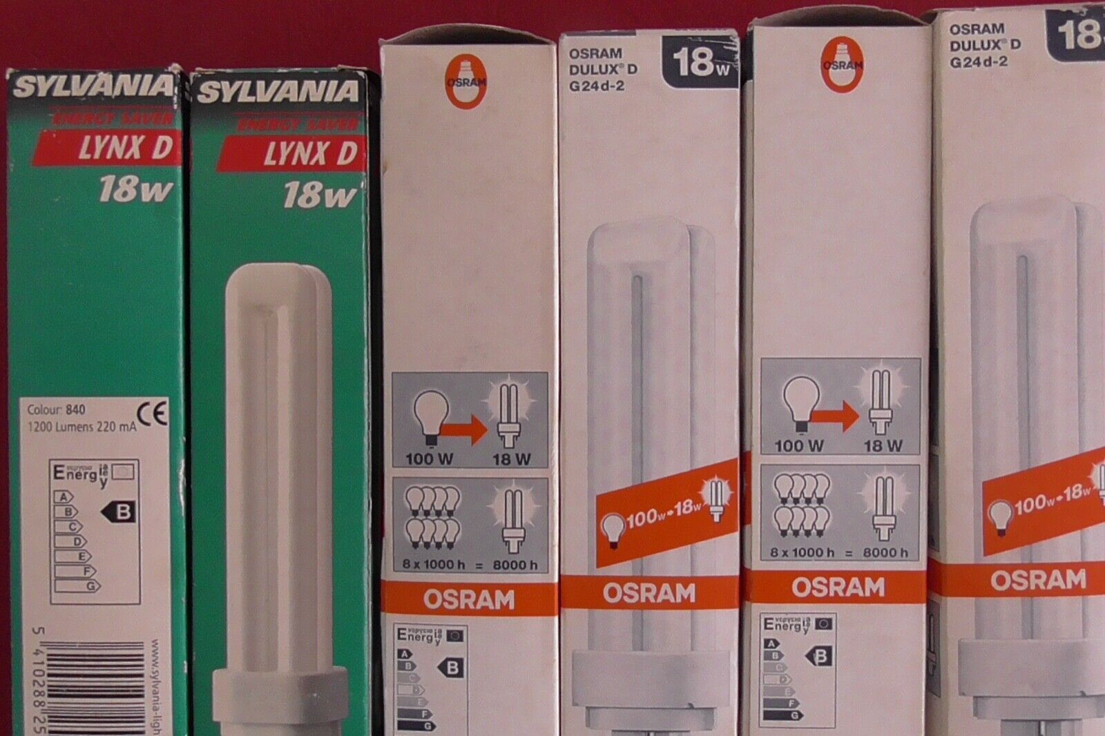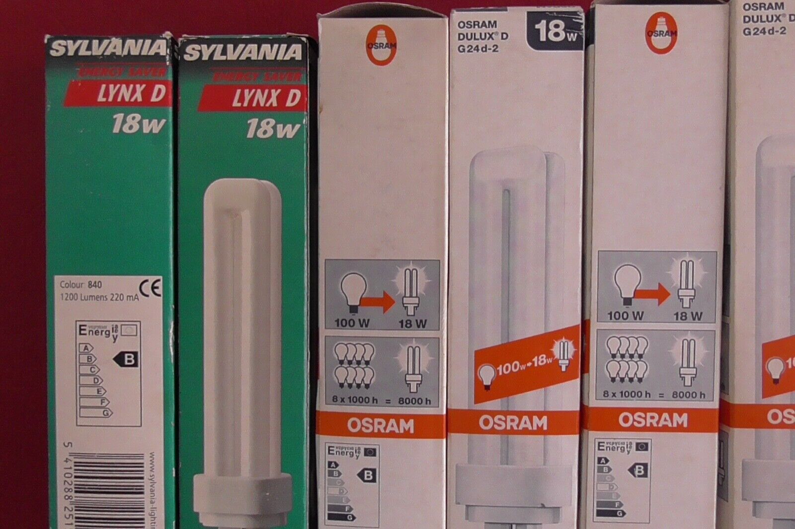 6 Ampoules Basse Consommation  4P 18W  2 Pin , G24d-2 ,  2 SYLVANIA  + 4 OSRAM