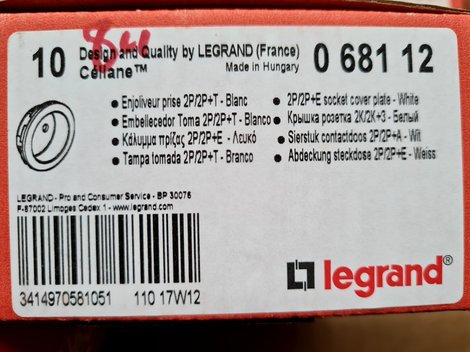 8 Enjoliveur Prise de Courant 2P/2P+T Legrand Céliane Blanc 0681 12 , 068112