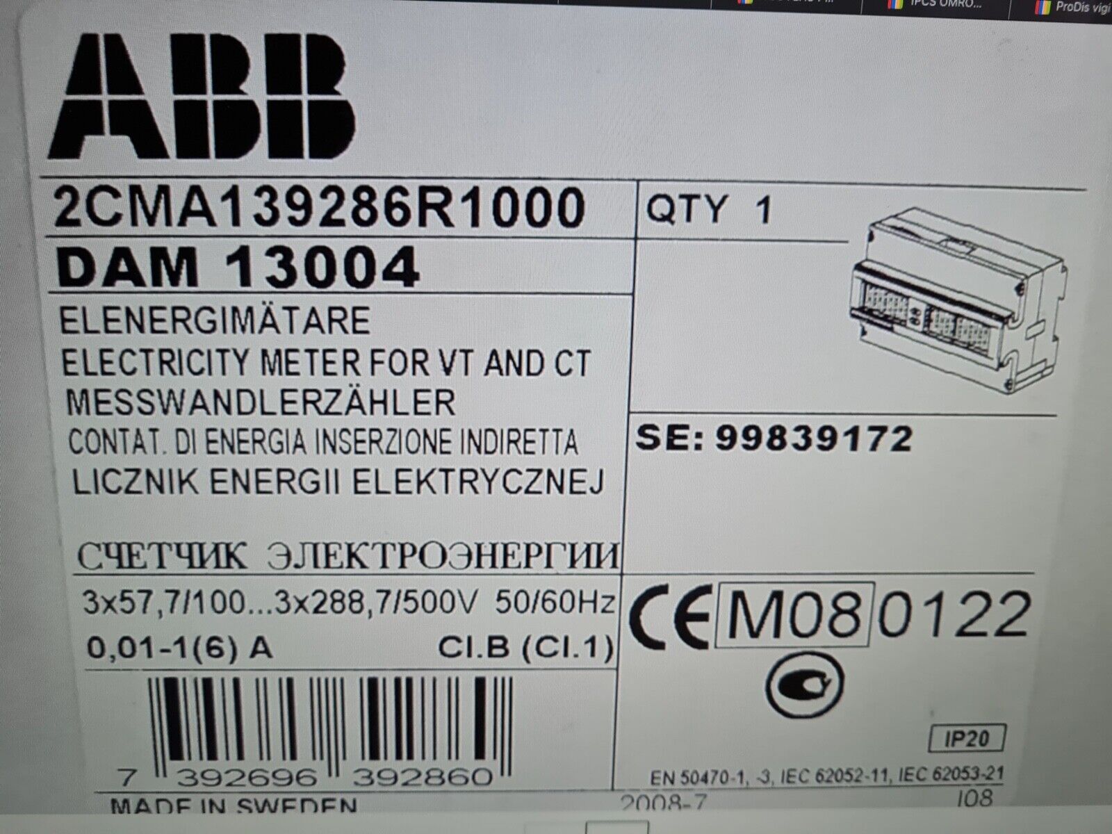 ABB KWH Electric Meter DAM 13004 , 2CMA139286R1000