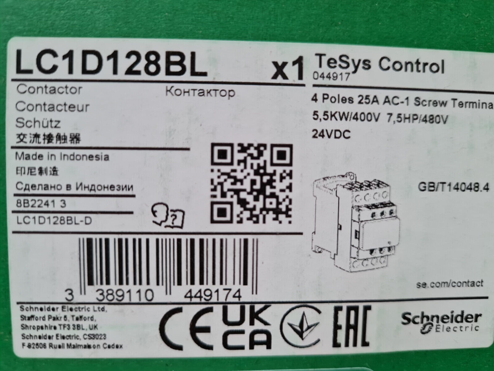 Contacteur LC1D128BL – 24V DC , 5,5kW SCHNEIDER LC1D12 2NO + 2NC
