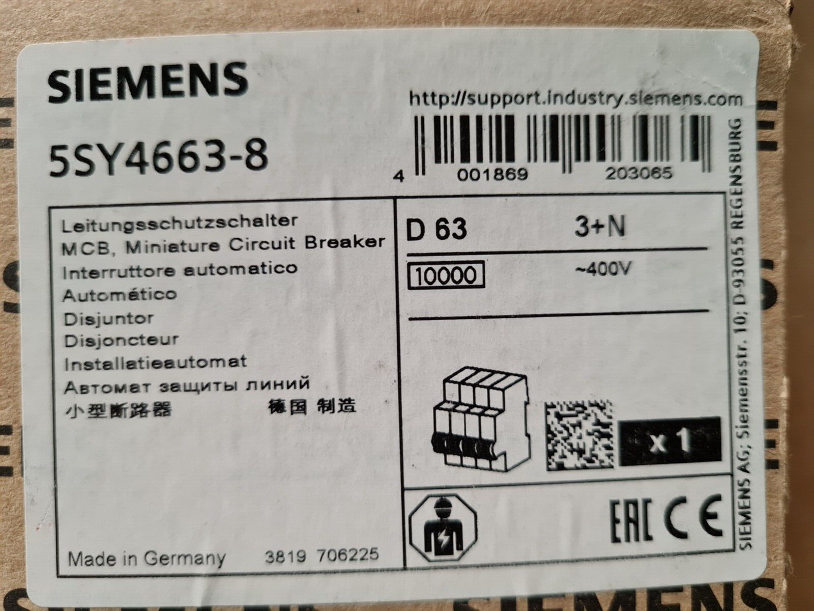 Investissez dans la qualité et la sécurité avec le disjoncteur D 63 A 3 P+N Siemens 5SY4663-8 10 kA. Protégez votre installation électrique et vos équipements en toute tranquillité d'esprit.