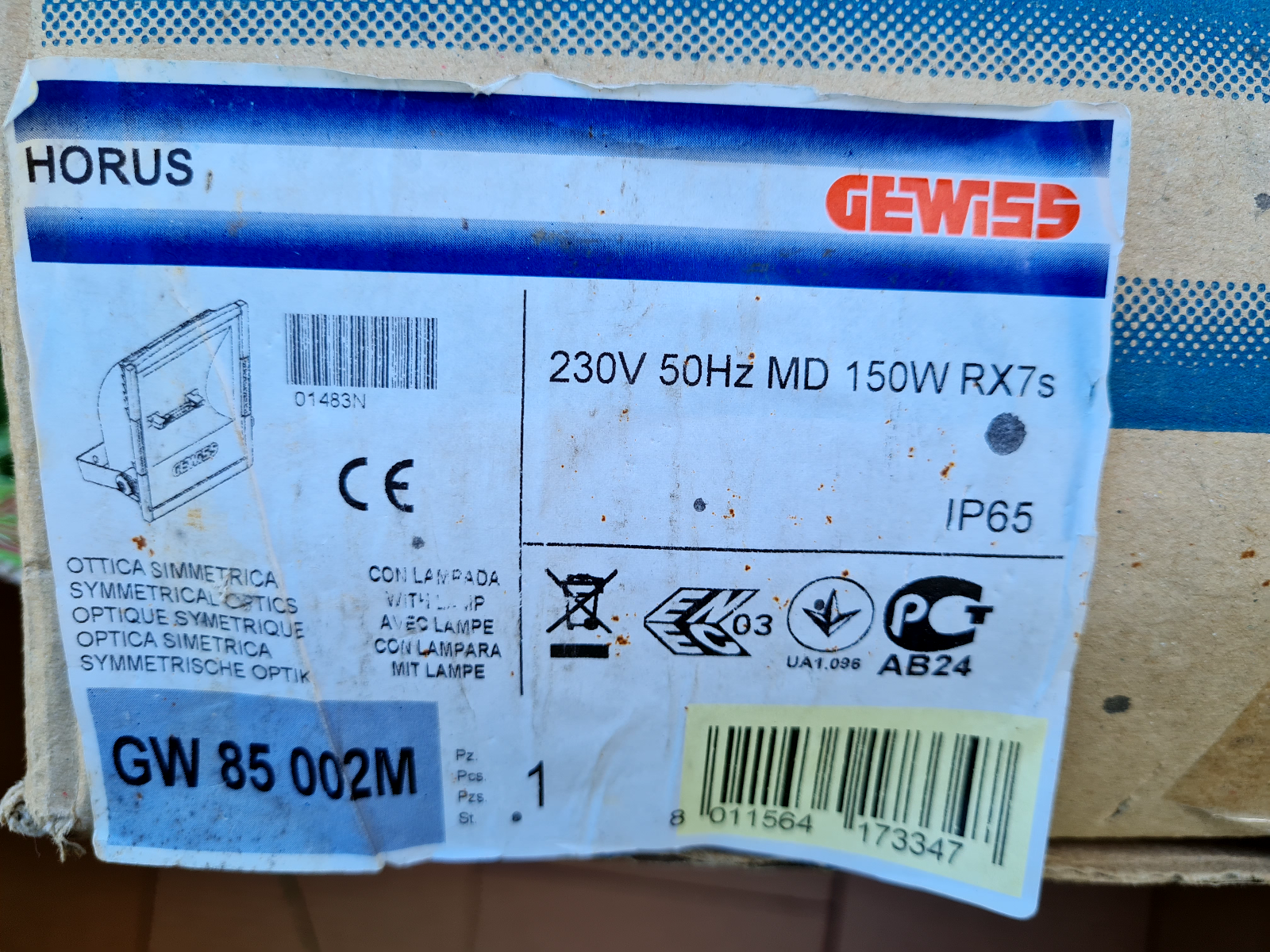 GEWISS HORUS , GW 85002M 150W RX7s  IP65 , OPTIQUE SYMÉTRIQUE