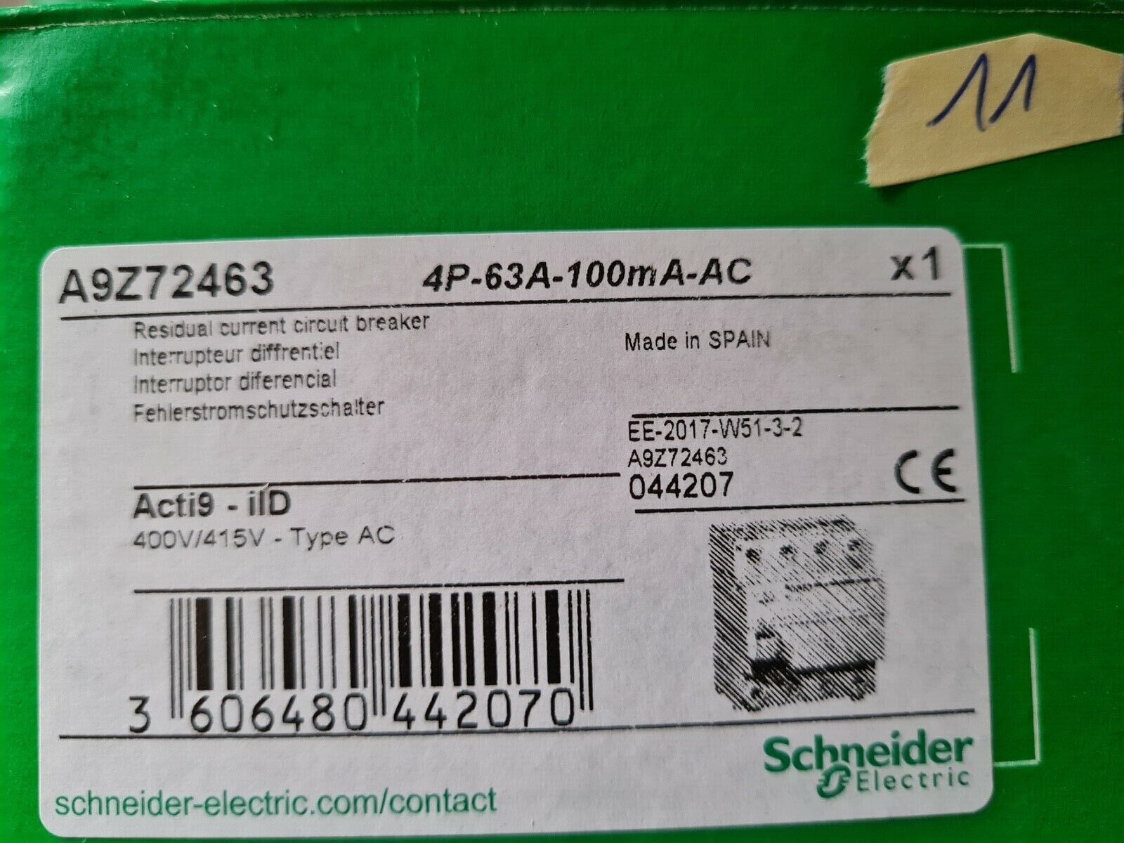 iID RCD 4P 63A 100mA-AC TYPE AC SCHNEIDER RCCB A9Z72463