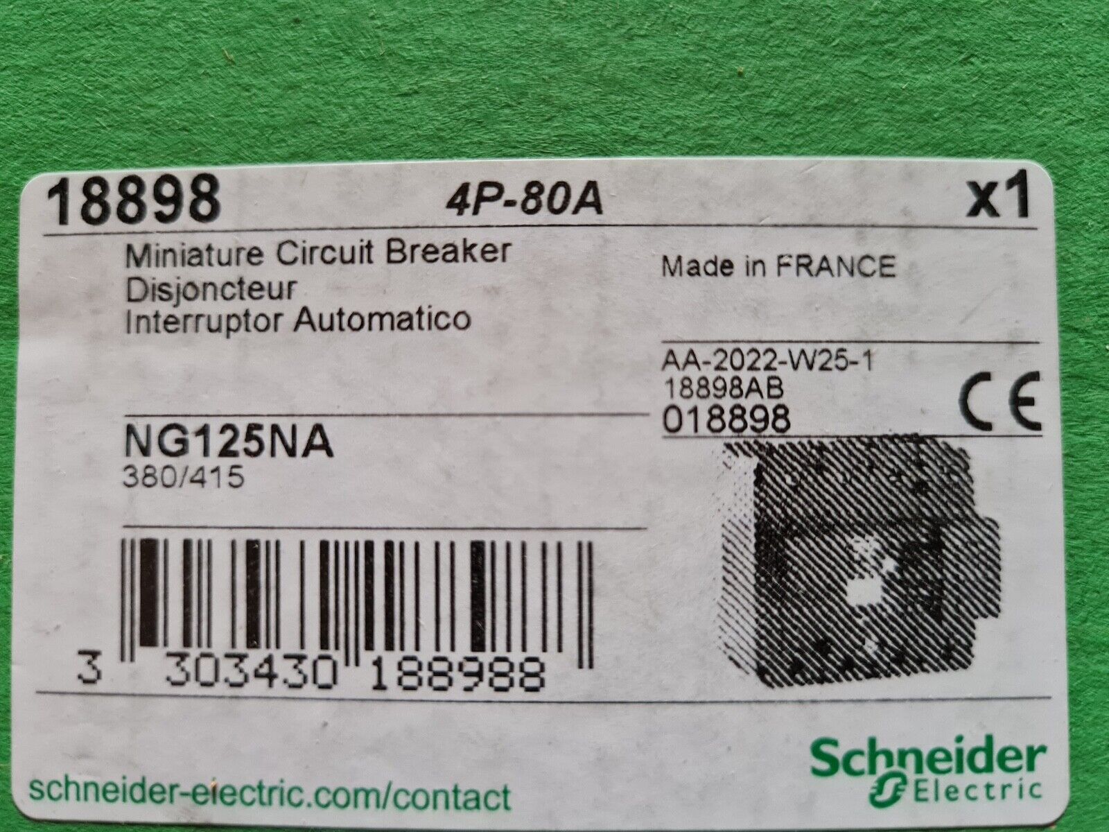 Découvrez l'INTERRUPTEUR SECTIONNEUR NG125 NA 4 P 80 A SCHNEIDER 18898 SWITCH. NG125, un dispositif essentiel pour votre installation électrique.