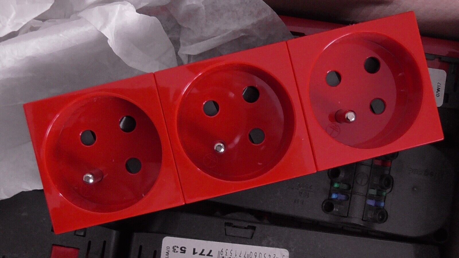 Prise  Détrompée Triple 2P+T  MOSAIC ROUGE LEGRAND   0771 53