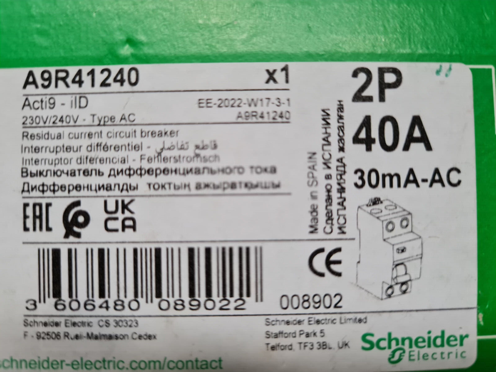 Schneider Electric iID 2P 40A 30mA-AC – A9R41240