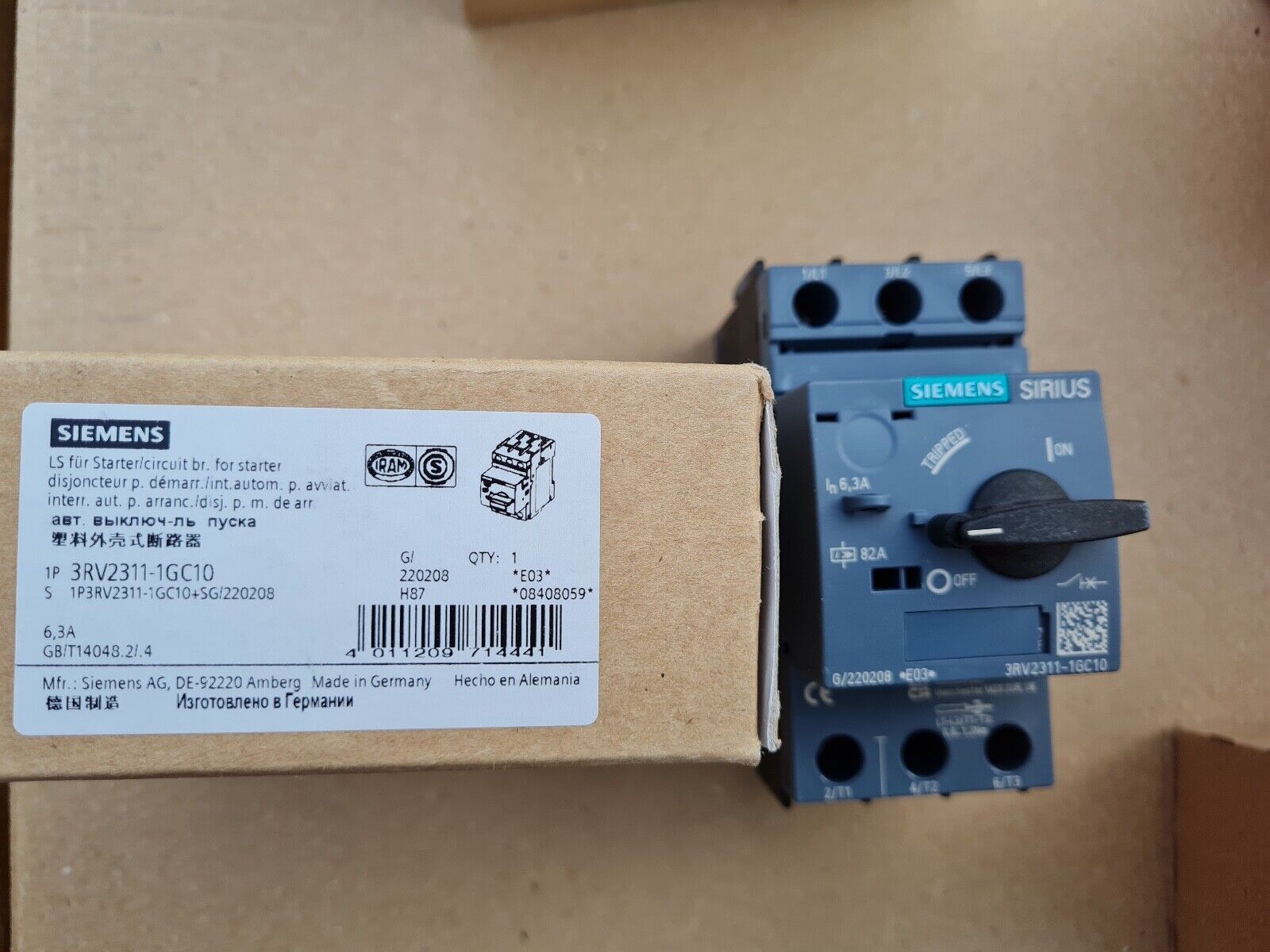 SIEMENS 3RV2311-1CG10 6,3A Disjoncteur Moteur