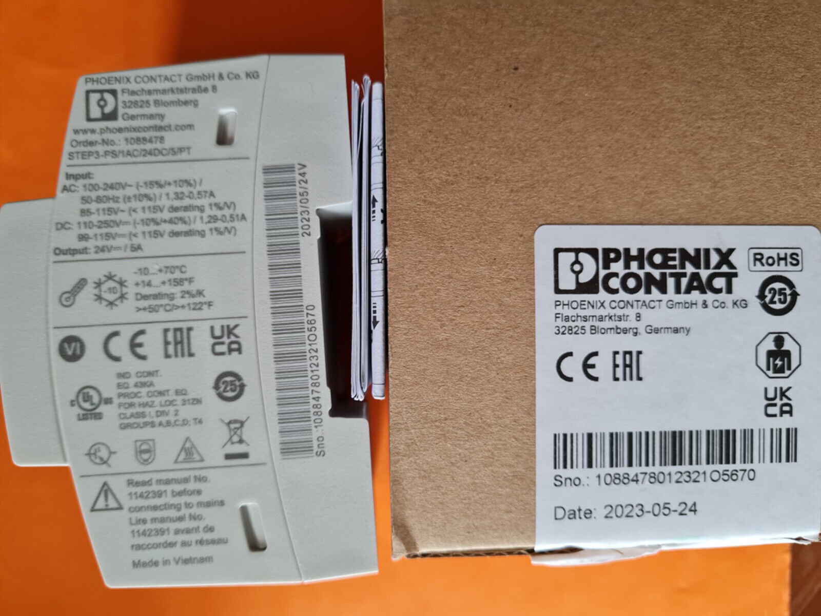 Alimentation Rail DIN Phoenix Contact 1088478. Tension 24 V DC, courant 5 A. Fiabilité et performance pour vos besoins en alimentation électrique. Profitez de la promotion actuelle!
